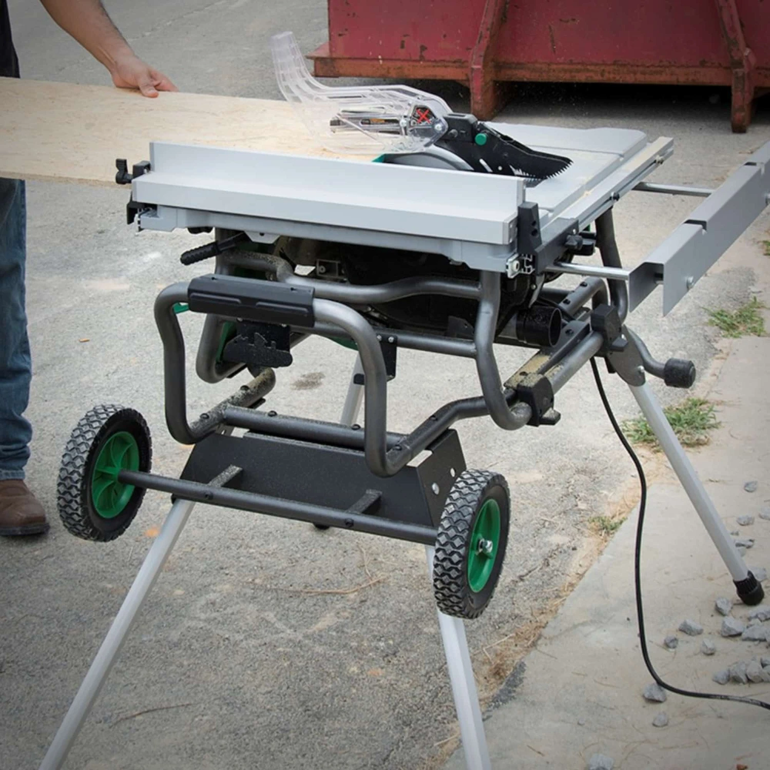 The C10RJ(S) 10″ Job site Table Saw features a 15-Amp motor with 4,500 RPMs, and is engineered for rip-sawing and cross-cutting of ordinary wood, hardwood, plywood and composite wood materials. The fold & roll stand is designed with sturdy legs for easy set up and breakdown, providing stability to the table saw while in use. The stand also incorporates wheels to ensure the user can maneuver through tough terrain with ease.