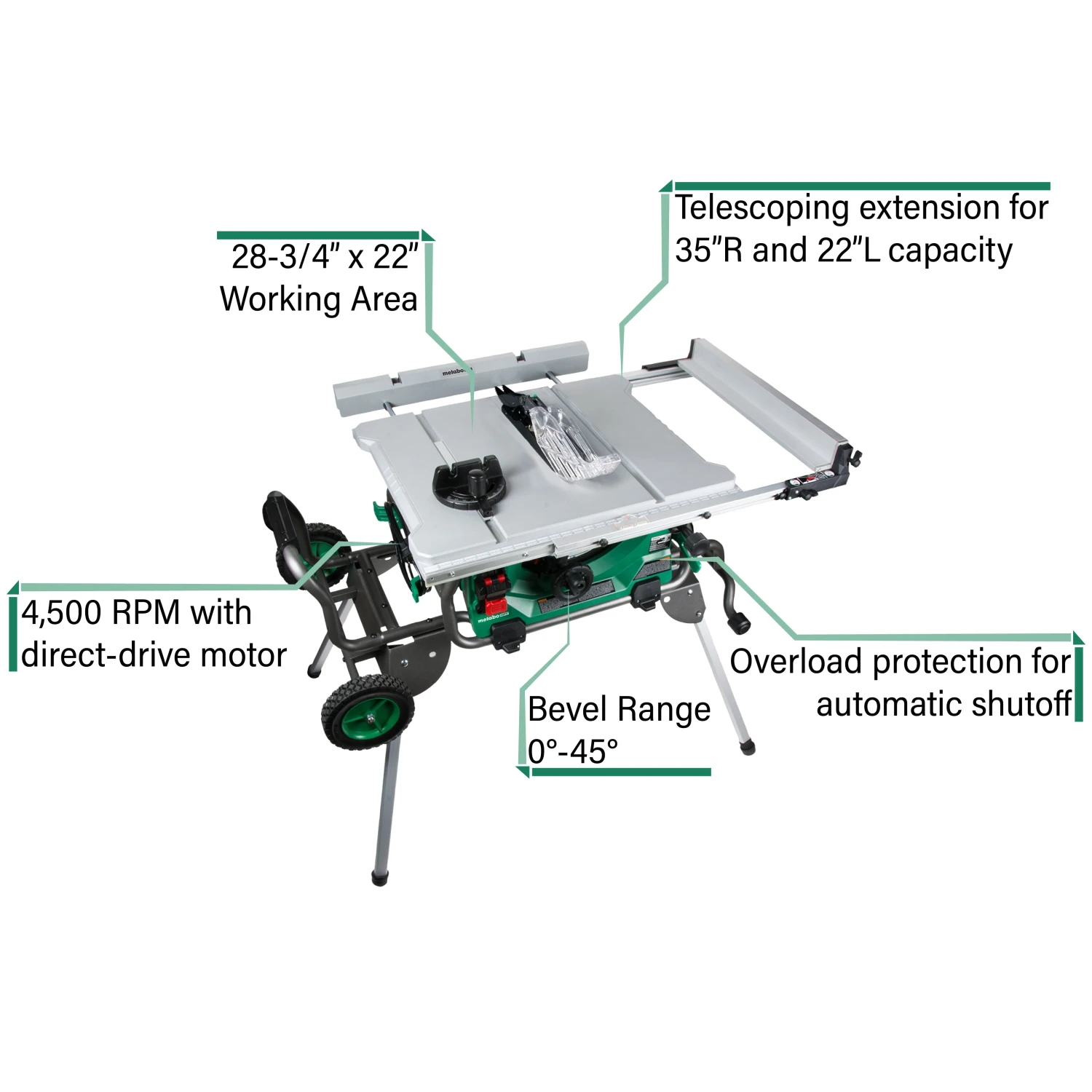 - Working Table Size: 28-3/4″ x 22″